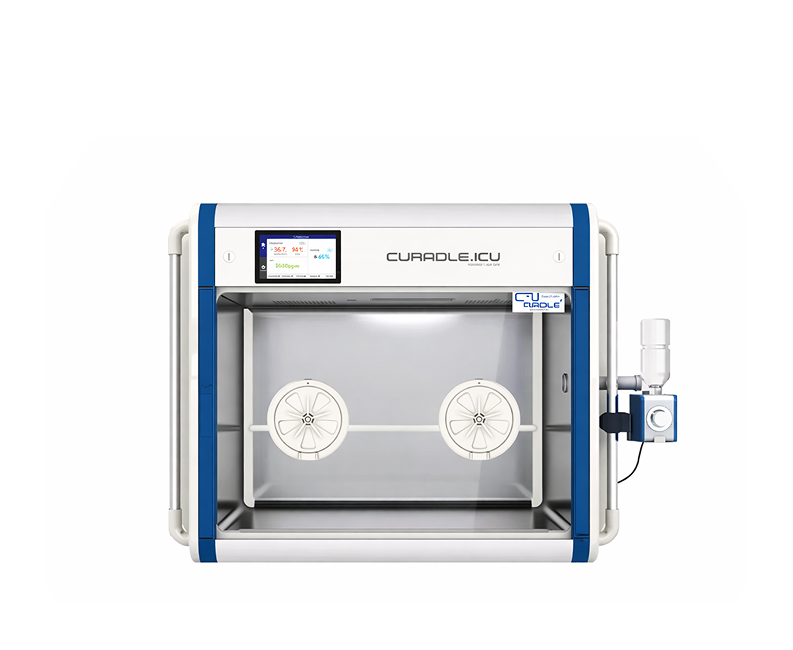 최대 60% 산소 제어와 이산화탄소 자동 배출이 가능한 중환자용 인큐베이터로, 190L 항균 챔버와 내장형 네불라이저를 통해 안전하고 위생적인 치료 환경을 제공합니다.
